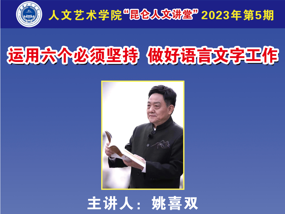 姚喜双教授在讲座中强调,习近平总书记在党的二十大报告中提出“继续推进实践基础上的理论创新,首先要把握好习近平新时代中国特色社会主义思想的世界观和方法论,坚持好、运用好贯穿其中的立场观点方法”。我们要深入学习贯彻习近平新时代中国特色社会主义思想和党的二十大精神,深入学习领会习近平总书记关于语言文字工作的重要论述和重要指示批示,深化对推广普及国家通用语言文字的基础性、战略性作用的认识,加大国家通用语言文字推广力度,始终做到“六个必须坚持”。一是必须坚持人民至上。全面建成社会主义现代化国家,必须坚持以人民为中心的发展思想,不断实现发展为了人民、发展依靠人民、发展成果由人民共享。二是必须坚持自信自立。在中华优秀传统文化传承弘扬和对外传播过程中,坚持中国特色社会主义文化发展道路,就需要在加大国家通用语言文字推广力度中,坚持自信自立。三是必须坚持守正创新。守正才能不偏离正确方向,创新才能把握时代、引领时代。四是必须坚持问题导向。要聚焦民族地区、 农村地区、边远地区等重点区域,聚焦学前儿童、在校学生、中小幼儿教师、青壮年劳动力和基层干部等重点人群,聚焦提升服务能力和水平,着力解决国家通用语言文字推广普及不平衡不充分的问题。五是必须坚持系统观念。国家通用语言文字本身是一个完整系统,普通话和规范汉字的推广普及是普遍联系、全面系统的工作,既要从普通话和规范汉字推广普及的角度把握,也要从普通话与规范汉字在推广普及中的内在关联去把握。六是必须坚持胸怀天下。充分考虑国际社会不同群体、不同领域对我国国家通用语言文字的实际需求,充分发挥国家通用语言文字在加强国际传播能力建设中的重要作用。