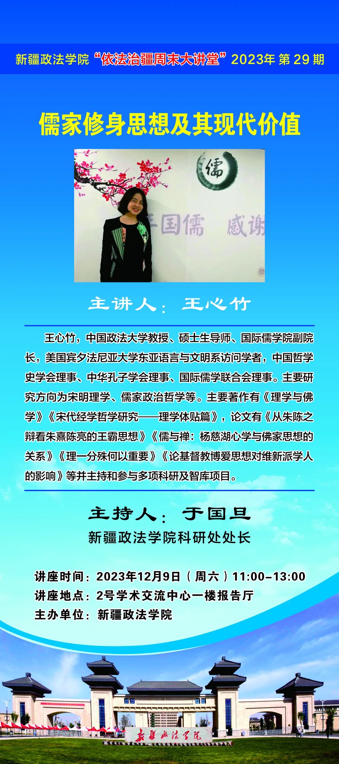 为了深入学习宣传贯彻党的二十大精神,认真学习贯彻习近平总书记关于传承中华优秀传统文化的重要论述,12月9日,我校特别邀请到中国政法大学王心竹教授作“儒家修身思想及其现代价值”的专题讲座。党委常委、副校长魏建华,各部门、各二级学院负责人及全校教师参加,学生们在教室观看直播,讲座由科研处处长于国旦主持。